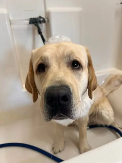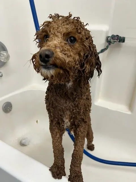 Let our experienced staff take your pooch to the spa. It doesn't matter if they come in just for a quick brush and fluff, a rinse, or that pampered show dog coat, we'll make sure they go home looking and feeling like the million dollar dog you know they are. For a simple kennel bath or nail trim just let us know at drop off and we can make that happen! If you're interested in the full works, call today to set up a grooming appointment!